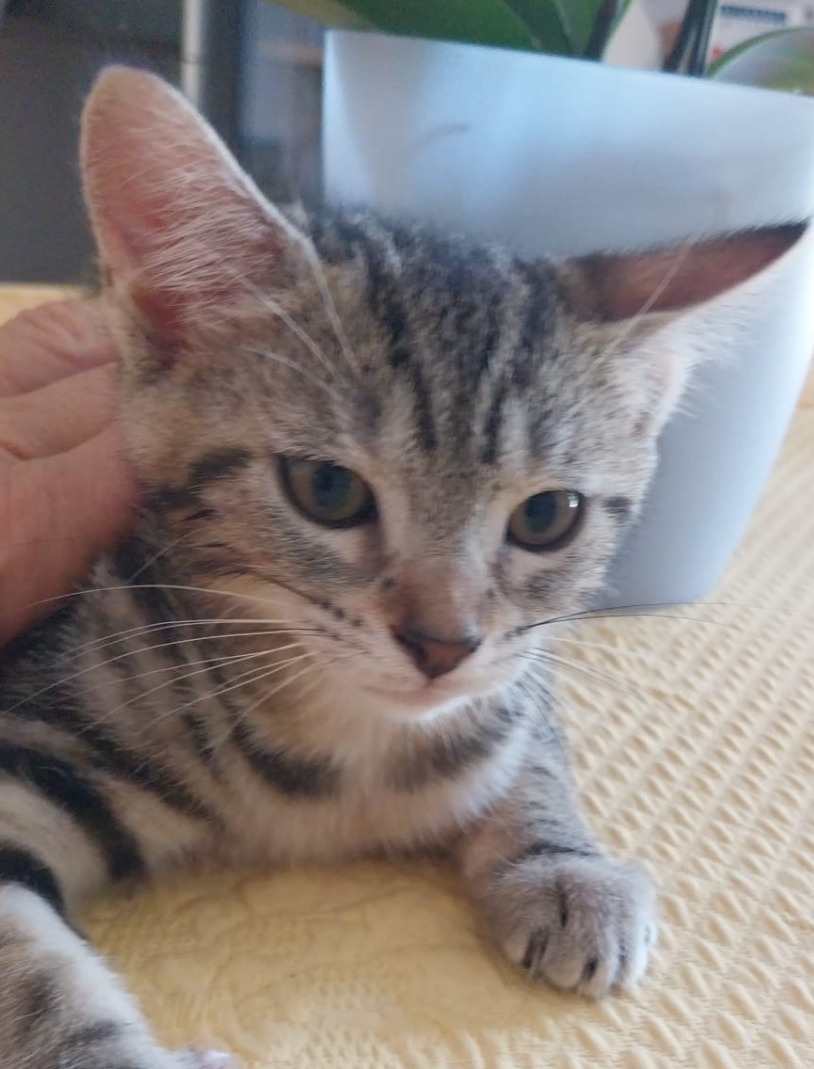 Coucou, c'est moi APSARA, issue de la fratrie des 4 bébés dit "bébés Batman". Je suis une adorable chatonne femelle, née le 18 avril 2025.