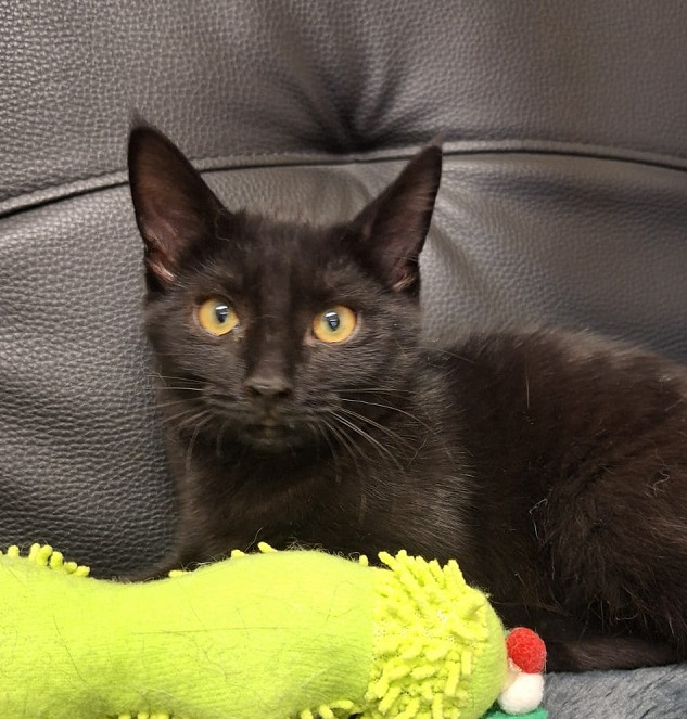 ALLEGRA est une adorable chatonne femelle noire née le 1er août 2025.Cette magnifique petite perle noire aux yeux couleur ambres saura vous séduire.