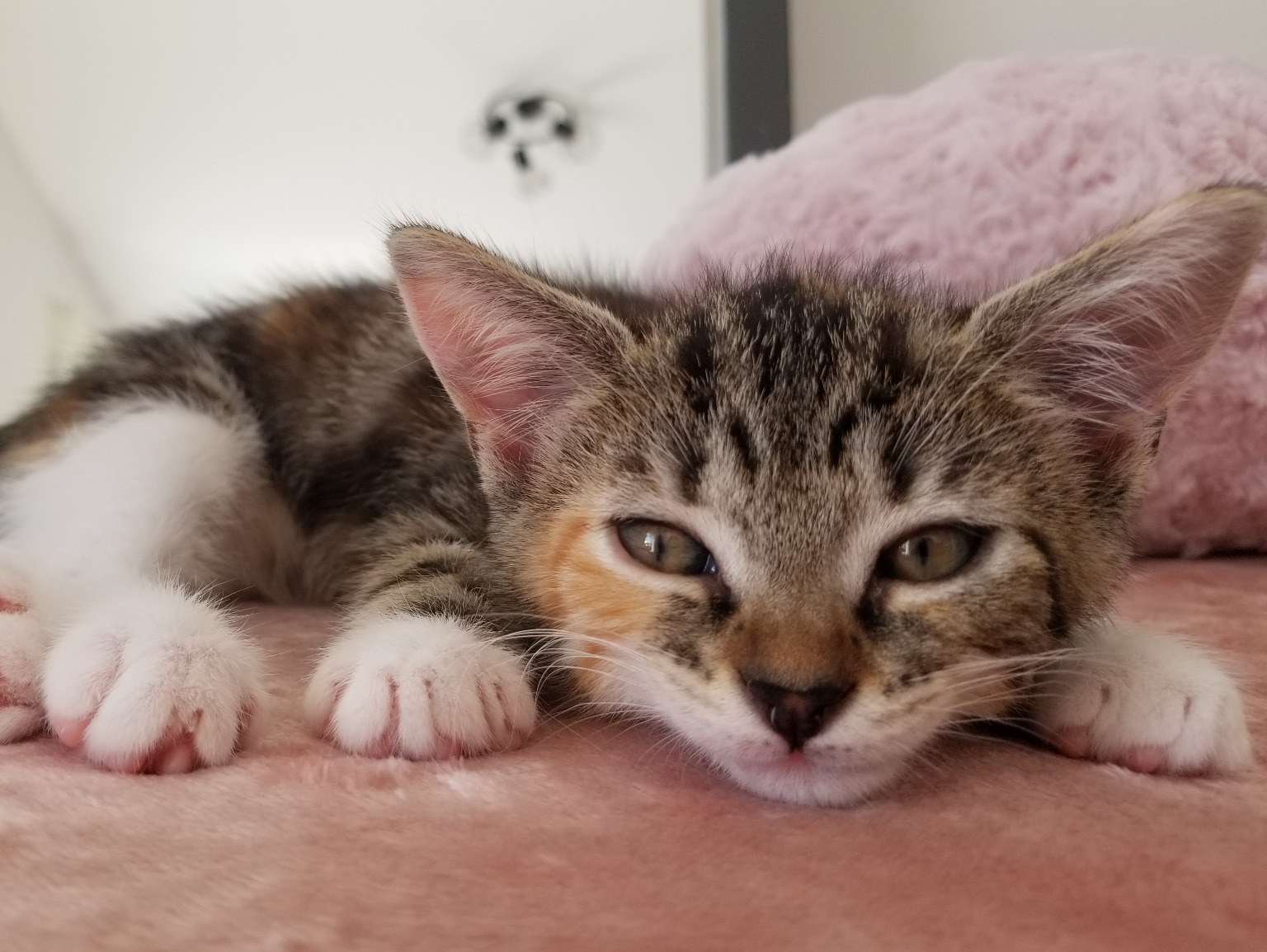 SHIVA, de la fratrie des Tigrés (Sienna, Socrate, Saphir), est reconnaissable grâce à ses chaussettes blanches et sa robe tricolore.