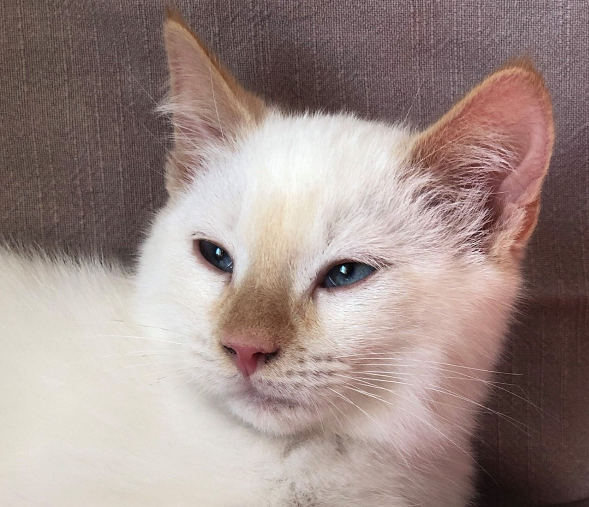 Sulky est un chaton calme et réservé, qui a besoin d'être en confiance pour sortir de sa cachette. Mais il se laisse facilement porter et ne bouge pas d'un pouce pendant les séances de caresses.