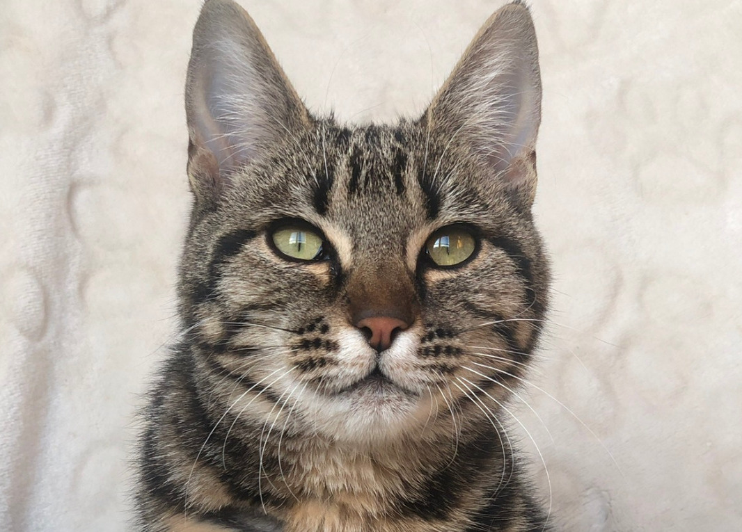 UMA est arrivée pour la première fois à la maison en janvier 2023 après avoir été identifiée, vaccinée et stérilisée.