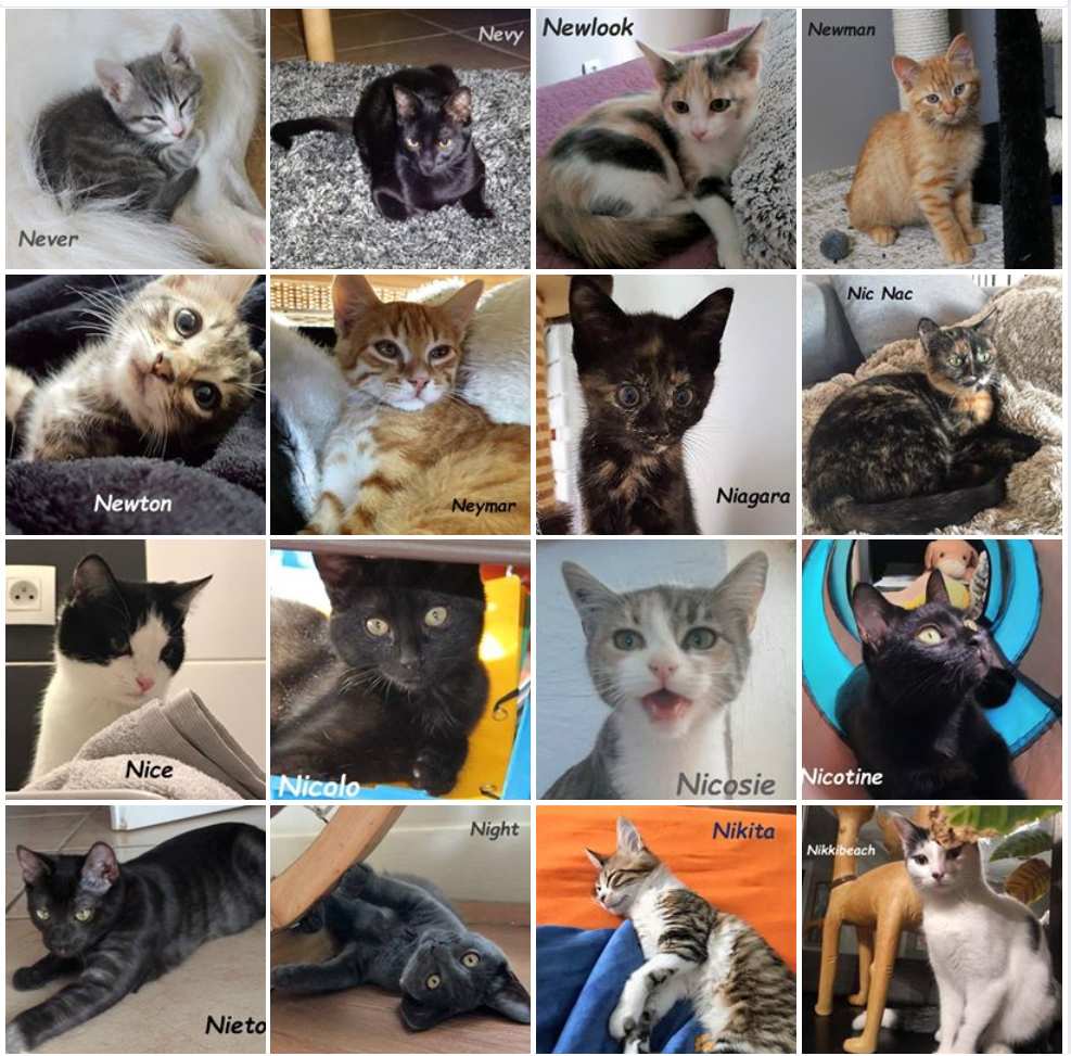 C'était l'année des noms commençant par la lettre "N" pour les chatons nés dans l'année, et nous avons pris en charge et fait adopter 156 chats ou chatons sur les départements de la Loire et du Rhône.